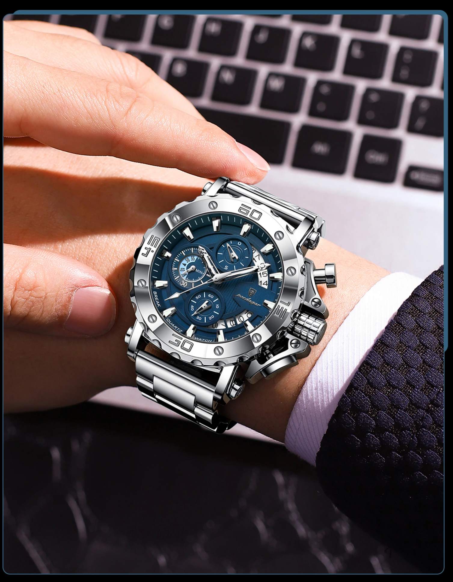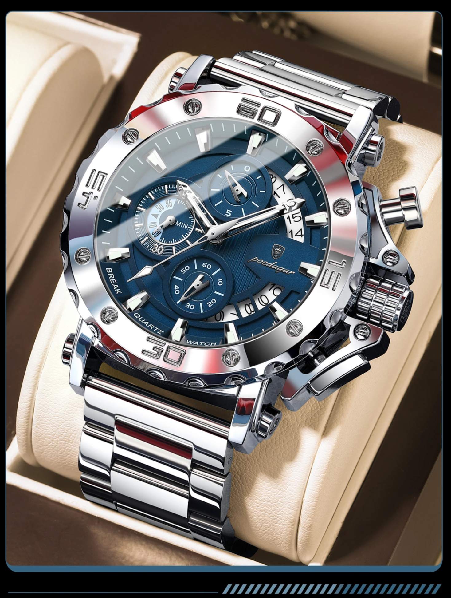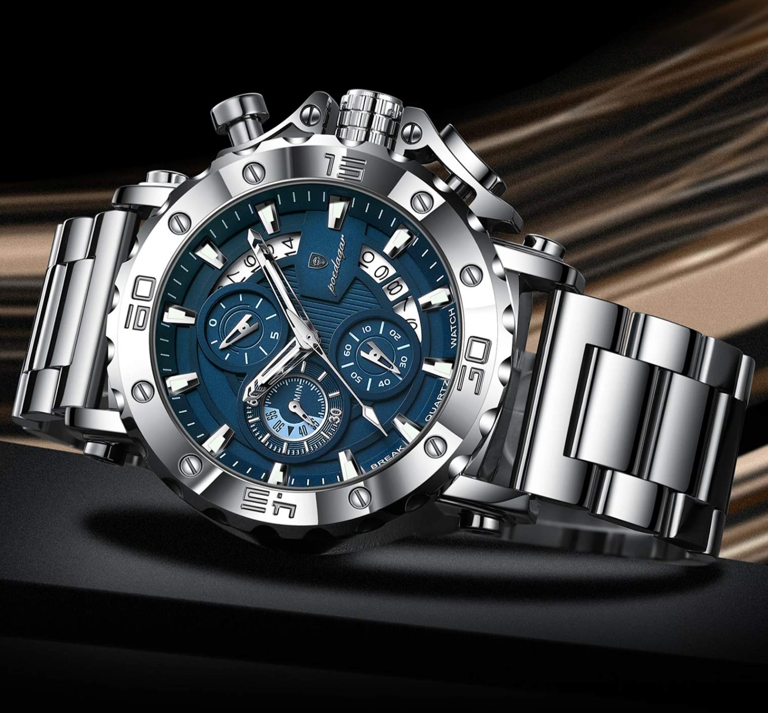 Adquira agora o Relógio Masculino Poedagar ChronoSteel e eleve seu visual com a sofisticação que só a Leontime proporciona.